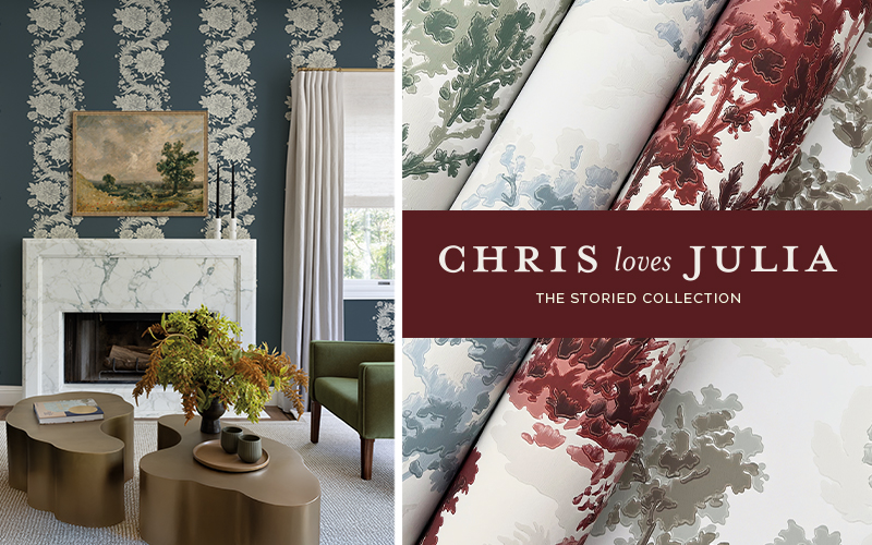 Painterly dahlias, lilies, and other garden delights form floral columns in this innovative take on striped wallpaper. Seen here in a palette of berry, coral, blush, golden ochre, and green against cool white. Teonna is an unpasted, non woven wallpaper measuring 20.5 inches wide by 33 feet long, covering approximately 56.4 square feet per roll.