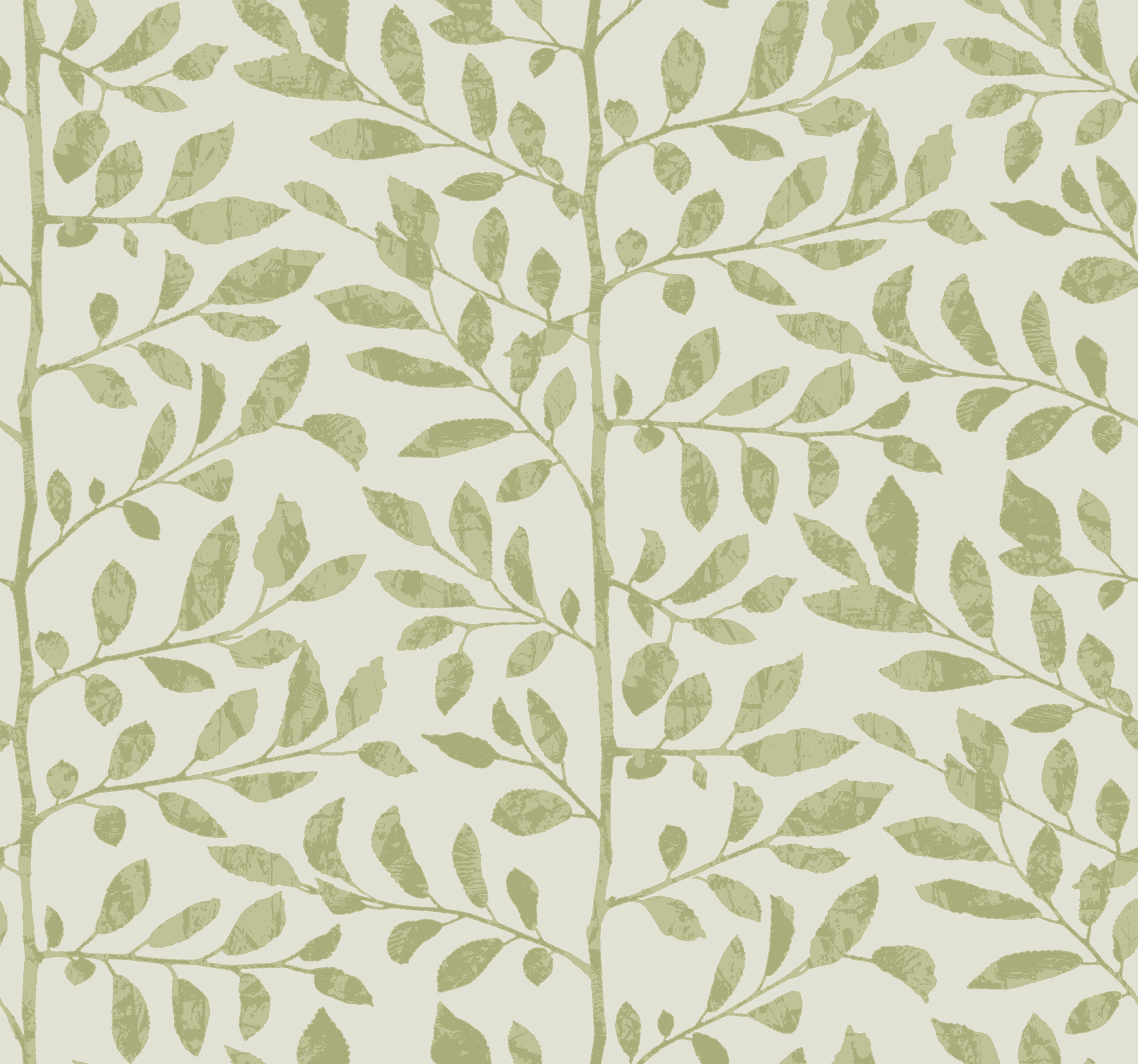 Offering both botanical charms and an organic alternative to stripes, Sagecrest features spindly saplings with thin branches laden with leaves. Seen here with sage and moss green foliage against an ivory backdrop. Sagecrest is an unpasted, non woven wallpaper measuring 27 inches wide by 27 feet long, covering approximately 60.8 square feet per roll.