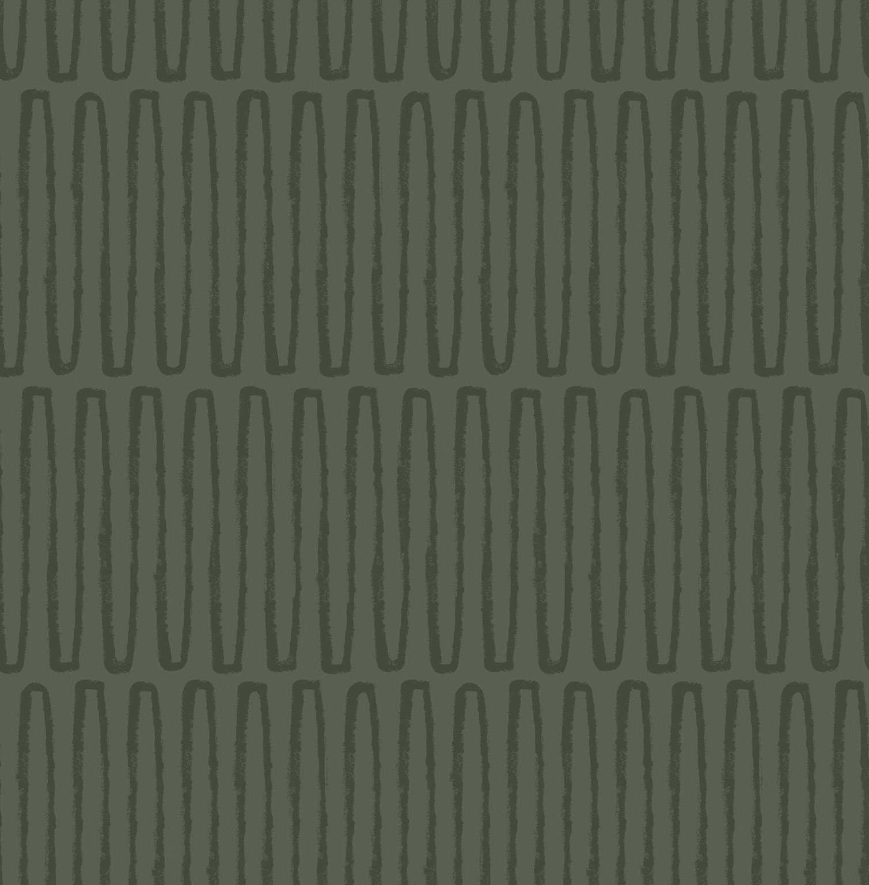 Tightly waving lines are seemingly painted along a solid backdrop in this playful evolution of striped accents. Seen here in dark green against green. Lars is an unpasted, non woven wallpaper measuring 20.5 inches wide by 33 feet long, covering approximately 56.4 square feet per roll.