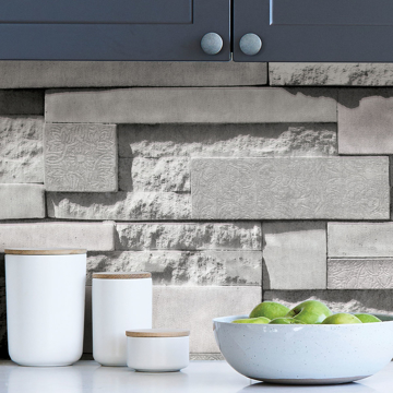 A futuristic twist on cement fixture, this self adhesive film will give surfaces a three dimensional look. The neutral color palette lends to its authentic look of stone. Grey Mineral Siding Adhesive Film contains 1 piece on 1 sheet that measures 78.7 x 17.71 inches. This product measures 17.71-in by 78.7-in when assembled.
