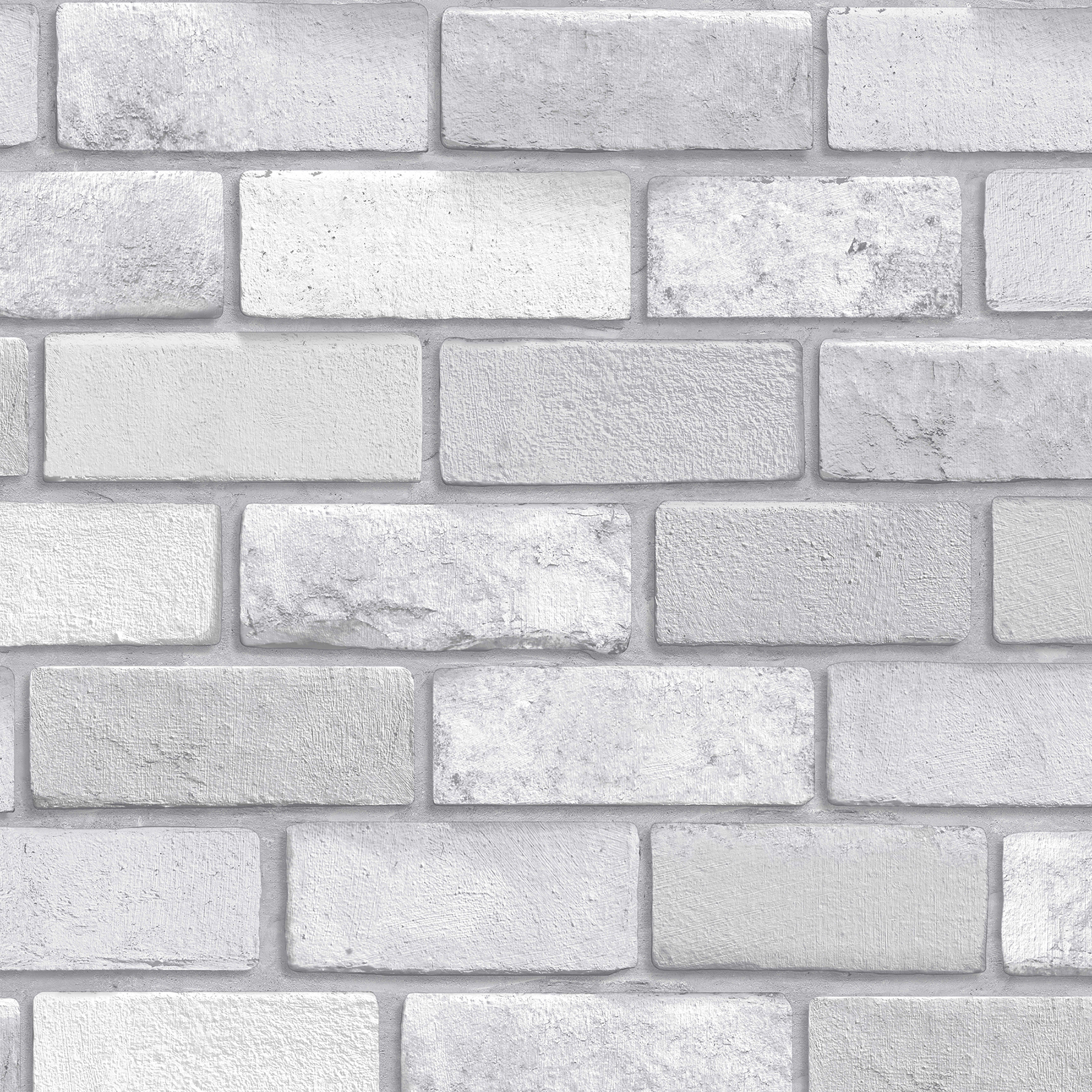 This light-catching brick wallpaper is a modern update to a classic motif. The white and light grey-painted bricks are finished with a layer of silver glitter. Truman is an unpasted, vinyl paper backed wallpaper measuring 20.9 inches wide by 33 feet long, covering approximately 57.5 square feet per roll.