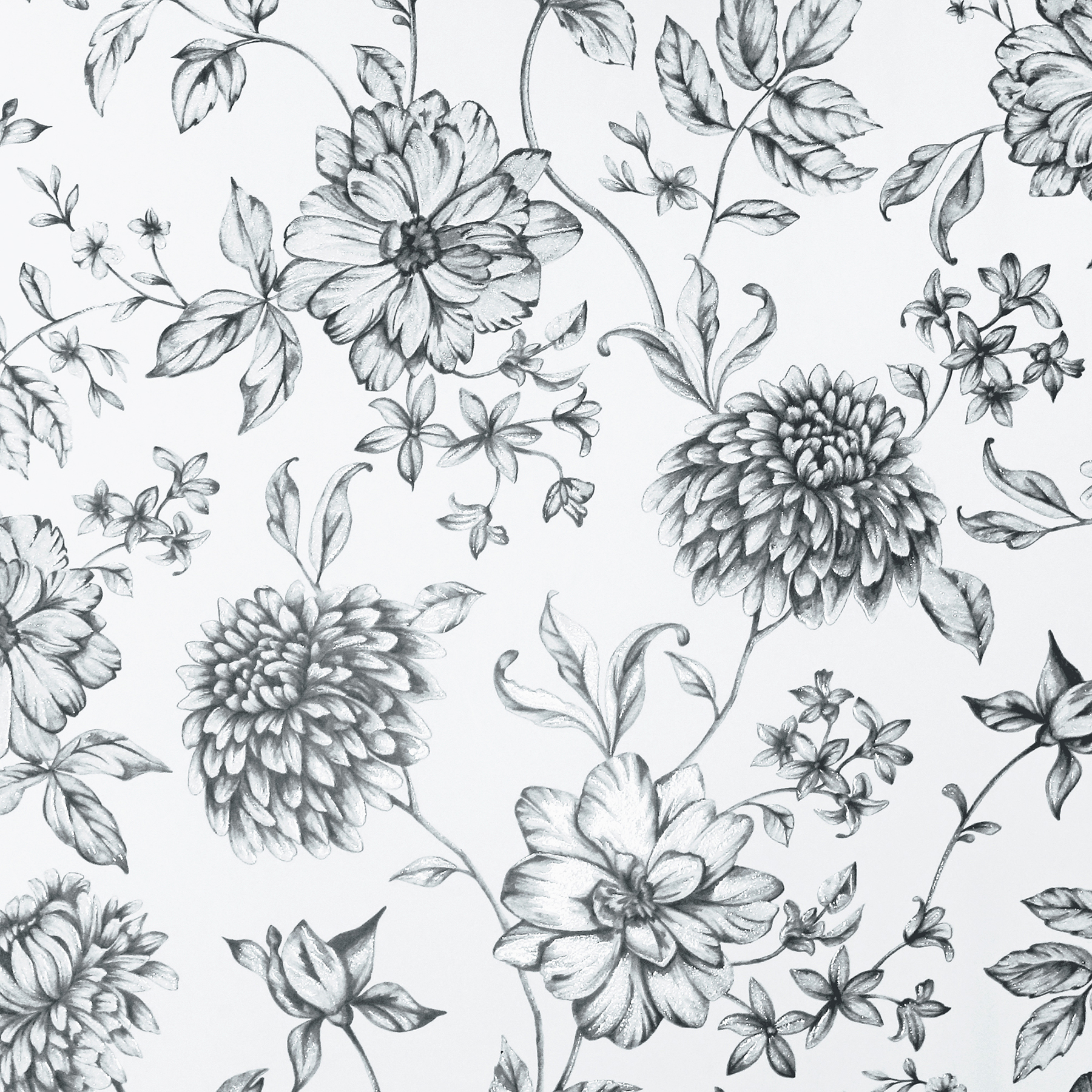This floral is imbued with artistic beauty, the trailing blooms seemingly illustrated in charcoal and the shading embellished with hints of glitter. Della is an unpasted, paper wallpaper measuring 20.9 inches wide by 33 feet long, covering approximately 57.5 square feet per roll.