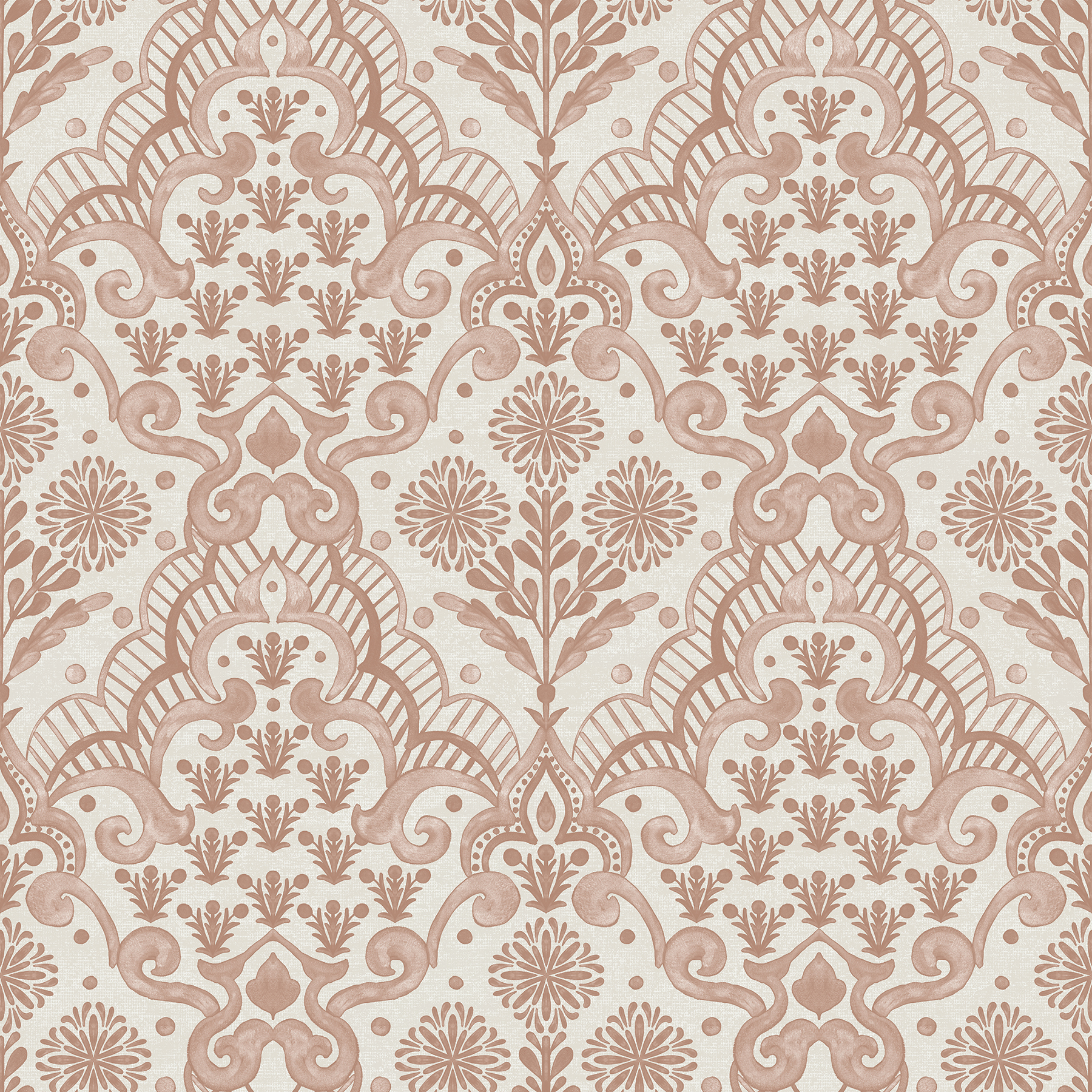 This damask bridges centuries of historic beauty. Inspired by a 19th-century print uncovered in a Brooklyn brownstone, this hand-drawn design features architectural forms with floral blooms, creating a look that is both elevated and versatile. Brownstone Blooms Clay Peel and Stick Wallpaper comes on one roll that measures 20.5 inches wide by 18 feet long.