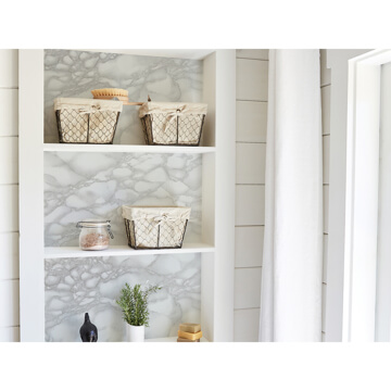 This radiant marble textured peel and stick liner brings a fresh and contemporary appeal to your kitchen or bathroom. Apply to a variety of flat surfaces for an easy and immediate design upgrade. Marble White Adhesive Film contains 1 piece on 1 sheet that measures 590 x 17.71 inches. This product measures 17.71 x 590 when assembled.