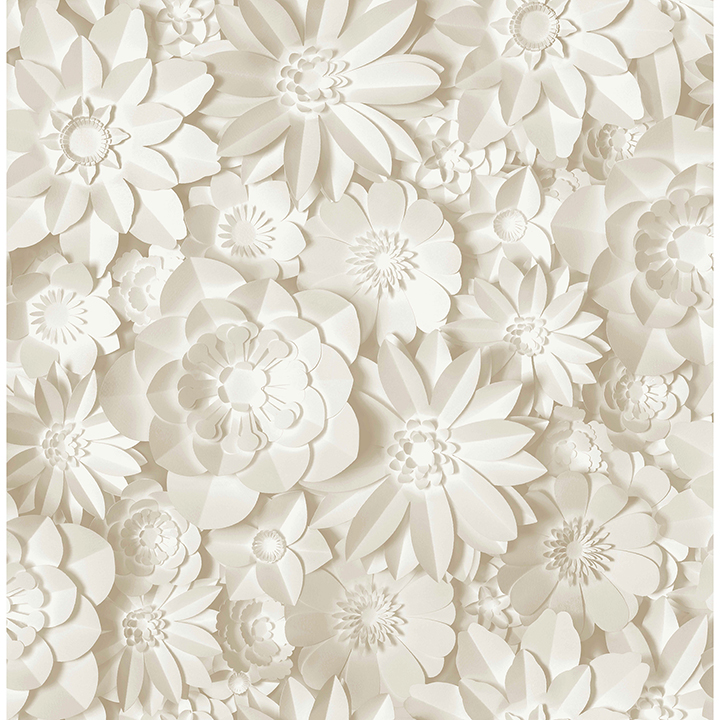 Imaginative and whimsical, this floral wallpaper features a variety of blossoms reminiscent of a paper collage. Seen here in creamy white hues. Dacre is an unpasted, paper wallpaper measuring 20.5 inches wide by 33 feet long, covering approximately 56.4 square feet per roll.