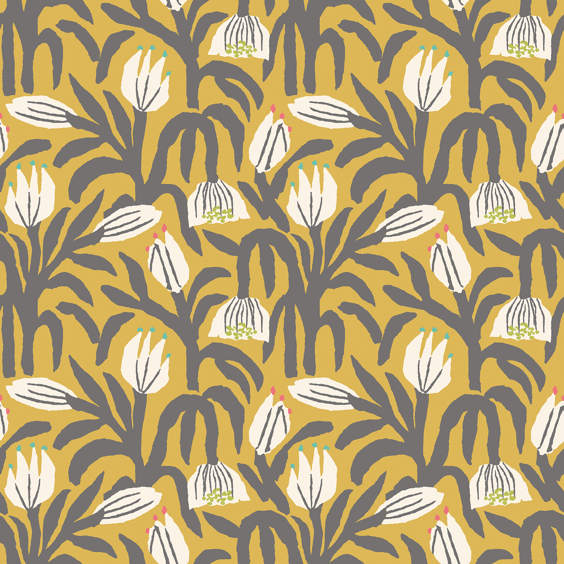 Modern and full of movement, this floral peel and stick wallpaper print brings a dose of energy to any space with ease. Chunky, illustrative grey and white florals dance over a mustard yellow backdrop. Chunky Flower Mustard Peel and Stick Wallpaper comes on one roll that measures 19.7 inches wide by 18 feet long.