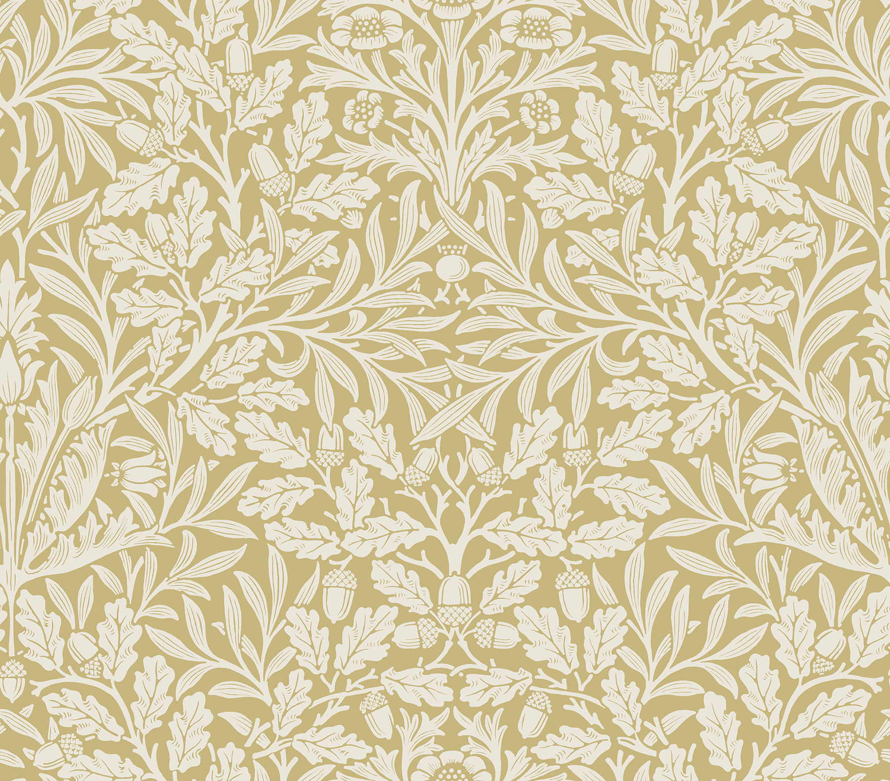 Inspired by an original Morris & Co. archive design, Acorn features interwoven leaves and oak motifs that create a calm, structured botanical repeat. Its nature-led pattern brings a timeless sense of craftsmanship to the home. Acorn Cowslip Peel and Stick Wallpaper comes on one roll that measures 20.5 inches wide by 18 feet long.
