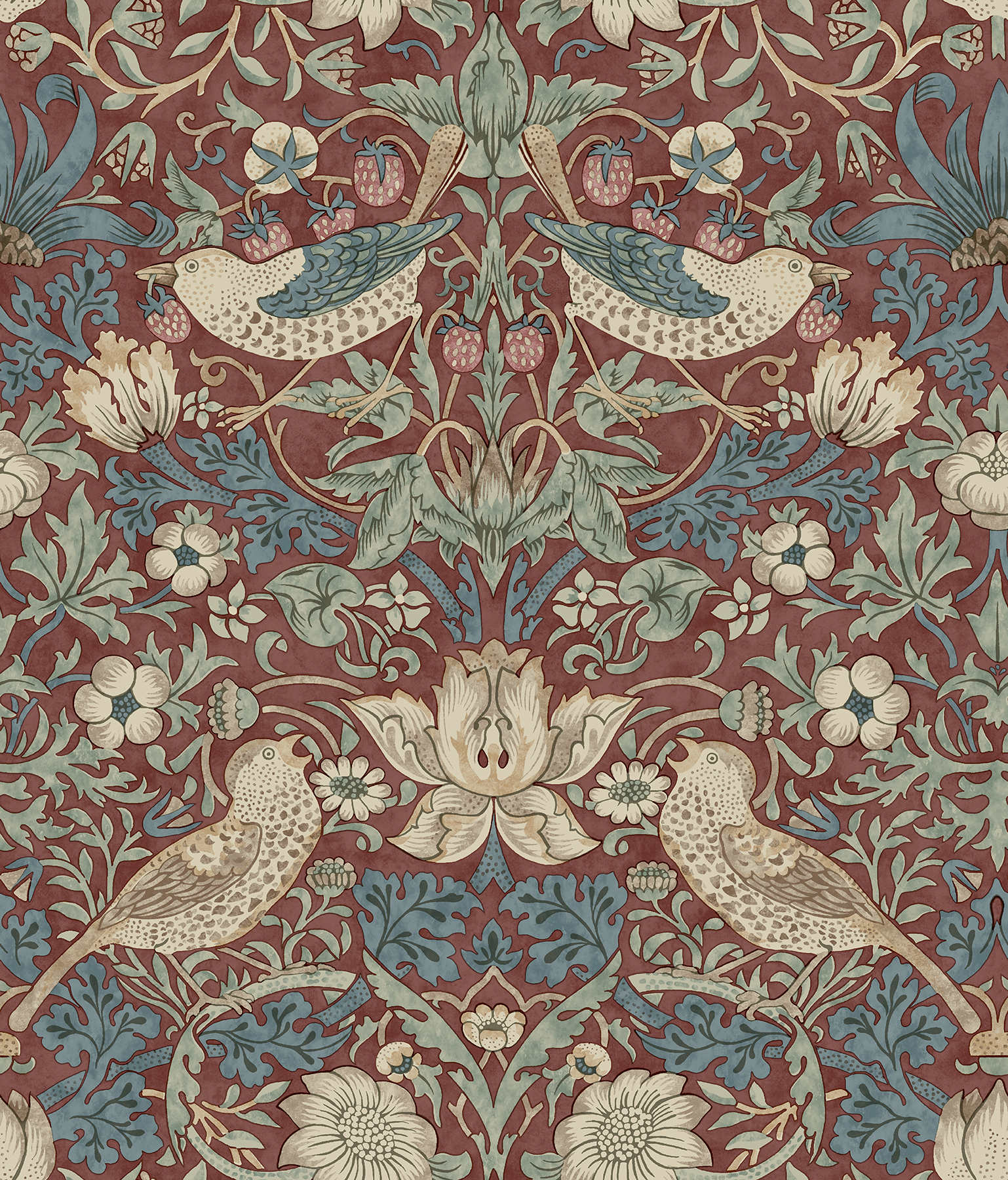 Strawberry Thief brings one of Morris & Co.’s most celebrated designs to life with lively birds, curling leaves, and rich storytelling woven into every repeat. Its intricate composition offers a classic, spirited print that feels timeless in any home. Strawberry Thief Madder Peel and Stick Wallpaper comes on one roll that measures 20.5 inches wide by 18 feet long.