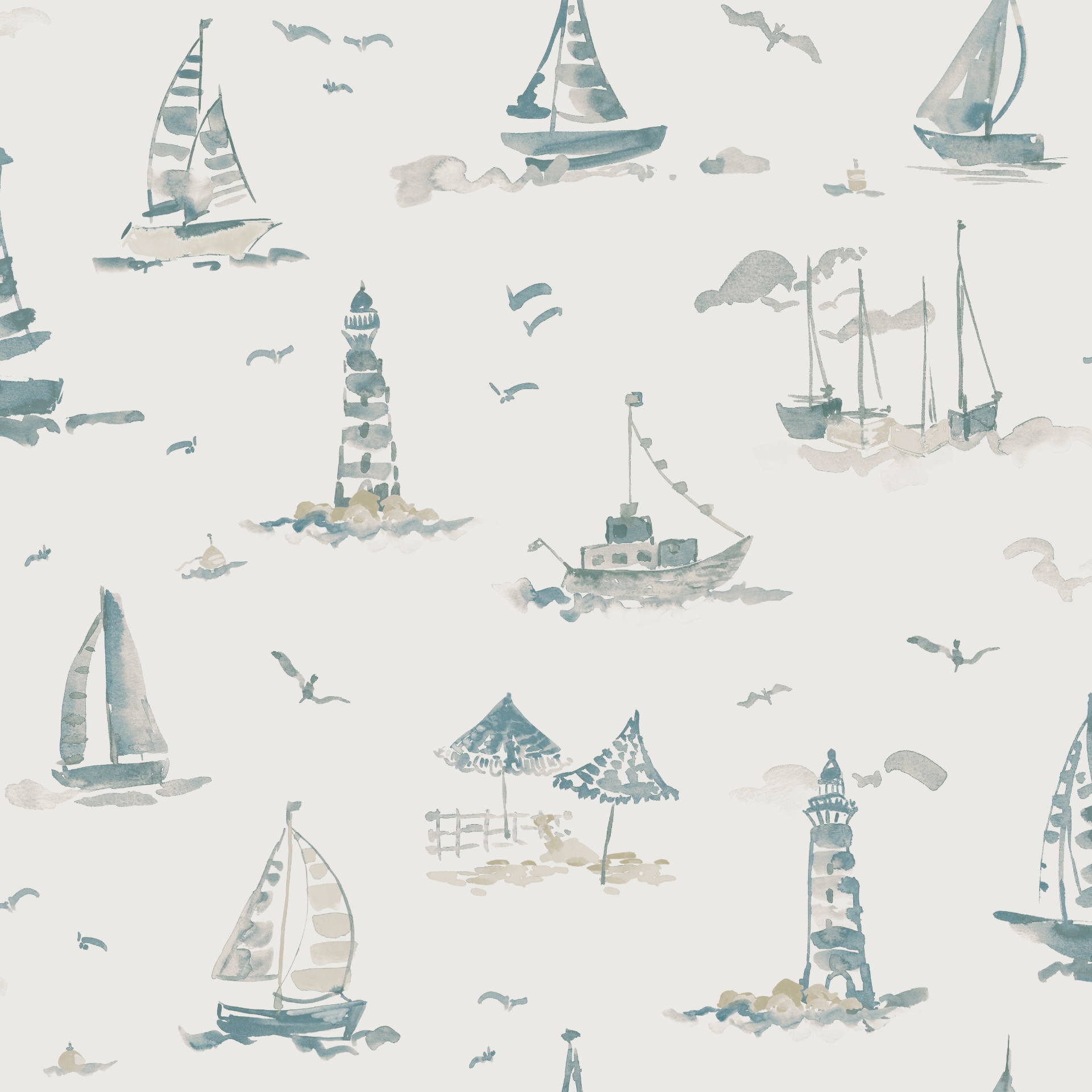 Set sail for easygoing style with this watercolor-inspired wallpaper. Nautical icons like sailboats, fishing vessels, beach huts, and lighthouses float across a soft, sandy backdrop in hues of blue and taupe. The breezy brushstrokes lend a light, hand-painted feel — ideal for creating a laid-back coastal vibe in nurseries, guest rooms, or entryways. Set Sail Taupe Peel and Stick Wallpaper comes on one roll that measures 20.5 inches wide by 18 feet long.